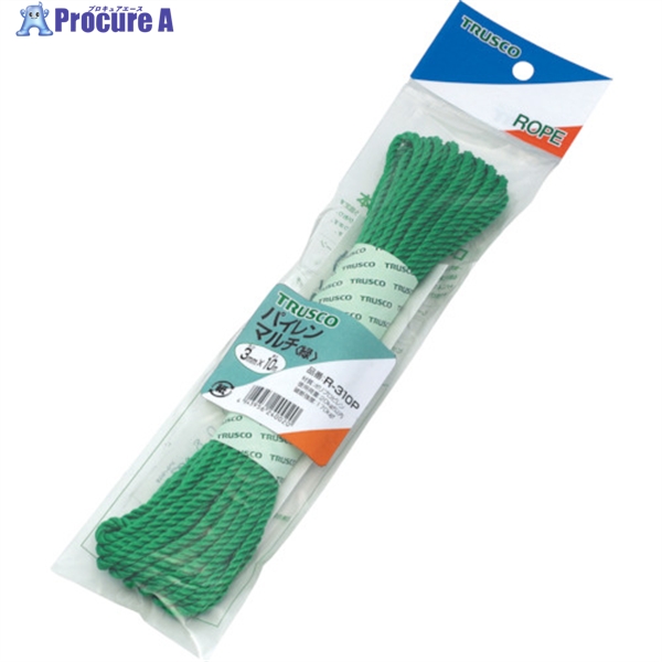 TRUSCO パイレンカラーロープ 3つ打 線径3mmX長さ10m 緑 ▼511-3113 R-310P GN(3パイX10M グリーン) 1巻