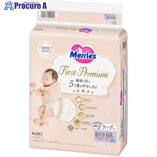 Kao 新生児用おむつ メリーズ ファーストプレミアム 新生児用5000gまで 66枚入り ■▼530-3412 388018 4個