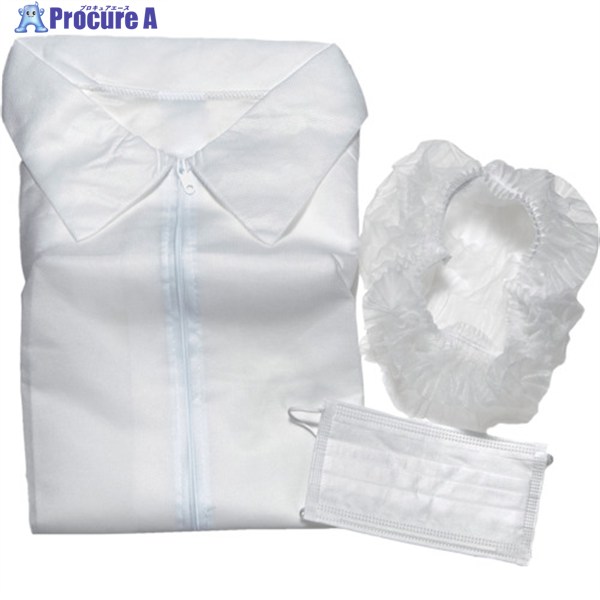 商品名:TRUSCO 不織布白衣他3点セット(白衣・マスク・ヘアキャップ) ファスナータイプ フリーサイズ