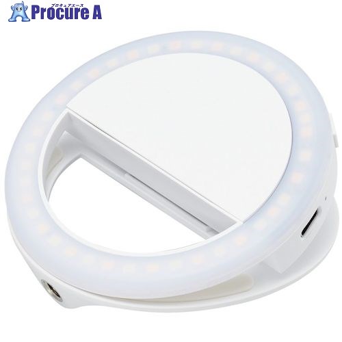 ELECOM クリップ式LEDリングライト 9cm 3色モード 3段階調光 1000mAh USB給電 ホワイト ■▼564-6129 DE-L04WH 1個