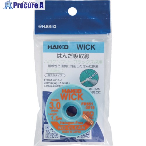 商品名:白光 はんだ吸取線 ウイック FR−551 ノークリーン ハロゲンフリー 3mm×1.5m