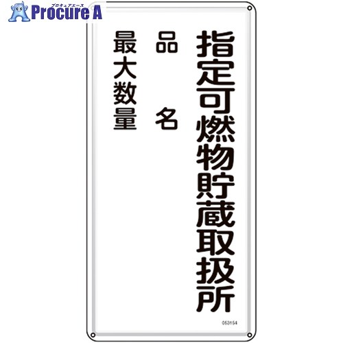 緑十字 消防・危険物標識 指定可燃物貯蔵取扱所・品名・最大数量 KHT-54M 600×300mm ▼705-9904 053154 1枚