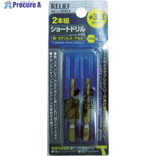 RELIEF 2本組 六角軸ショートドリル 3.3mm ▼798-2364 26853 1パック
