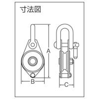 ●基本使用荷重(t):0.25●最大使用ロープ径(mm):8●車数:1●車径(mm):50●寸法(mm)A:135●寸法(mm)B:58●寸法(mm)C:35●頭部形状:シャックル型●使用荷重(kg):250