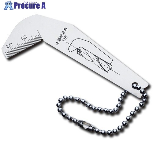 特長:●研磨後のドリル刃先角度確認に最適です。●目盛付で刃先長さが測れます。●ボールチェーン付です。