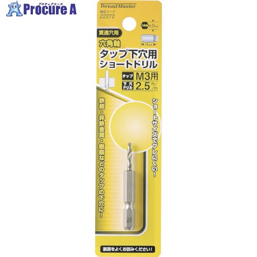 ミツトモ 六角軸ショートタップ下穴ドリル2.5mm M3用 ■▼858-7873 22272 1本