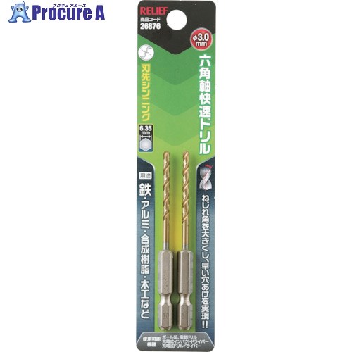 RELIEF 六角軸快速ドリル チタンコーティング 3.0mm 2本組 ■▼859-2424 26876 1本