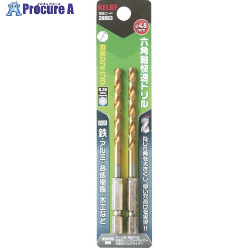 RELIEF 六角軸快速ドリル チタンコーティング 4.8mm 2本組 ■▼859-2431 26883 1本