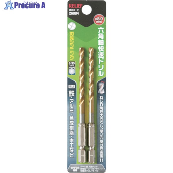 RELIEF 六角軸快速ドリル チタンコーティング 5.0mm 2本組 ▼859-2432 26884 1パック