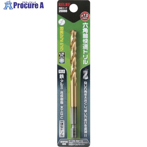 RELIEF 六角軸快速ドリル チタンコーティング 7.0mm 一体型 ■▼859-2436 26888 1本