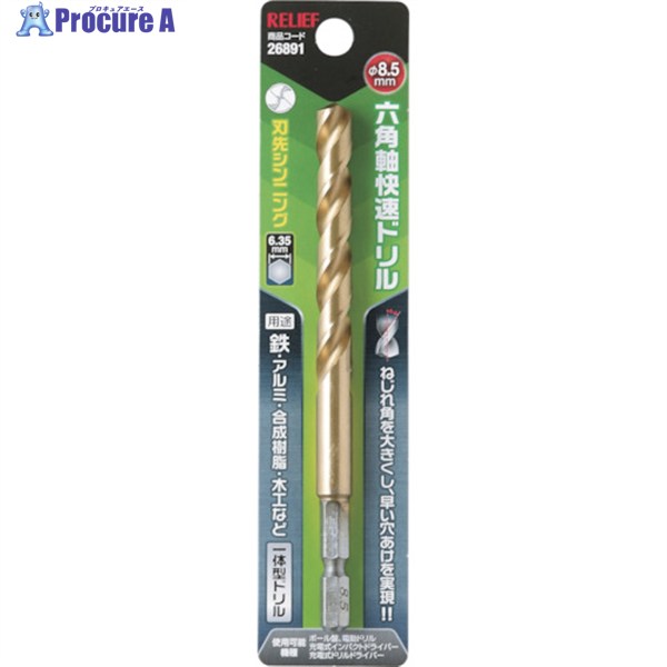 RELIEF 六角軸快速ドリル チタンコーティング 8.5mm 一体型 ▼859-2439 26891 1本