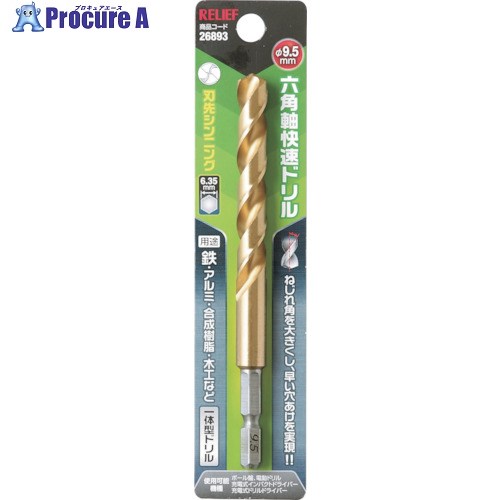 RELIEF 六角軸快速ドリル チタンコーティング 9.5mm 一体型 ■▼859-2441 26893 1本