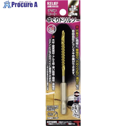 RELIEF チタンコート 中ぐりドリル φ4mm 六角軸 ■▼859-2453 26935 1本