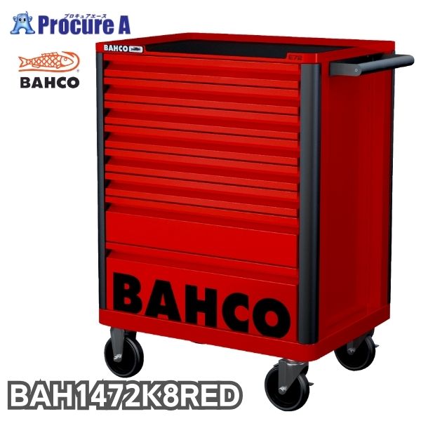 ポーチ付 バーコBAHCO キャビネット 8段レッドスチール製ワゴンツールストレージエントリー 1472K8RED赤 高さ955×幅693×奥行510mm 1台 ■▼139-0868
