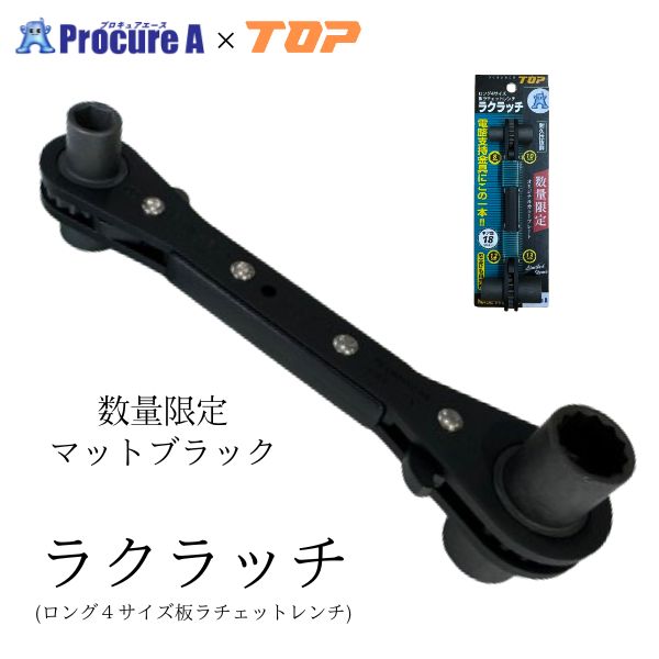 TOP ラクラッチ 8X10・12X13mm 限定カラー マットブラック PRW-3L 1丁 ロング4サイズ板ラチェットレンチ 8mm 10mm 12mm 13mm ギア数18 限定モデル