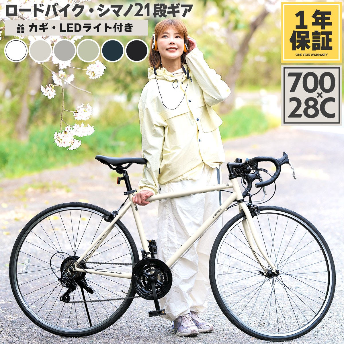 PROVROS ロードバイク 自転車 700×28C シマノ21段変速 初心者 ワイヤー錠・LEDライト クイックレリーズ 街乗り 通勤通学 プロブロスP-721