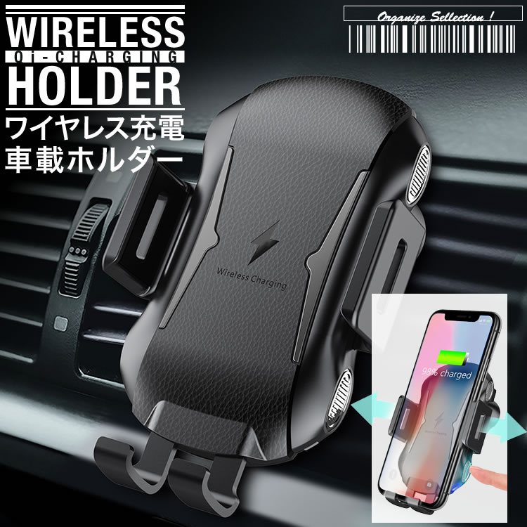 Qi対応のワイヤレス充電機能を搭載した車載スマホホルダー