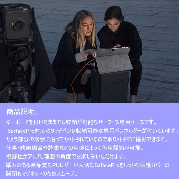 厚みのある高品質なPUレザーが大切なSafaceProをしっかり保護カバーの開閉もマグネットのためスムーズ。