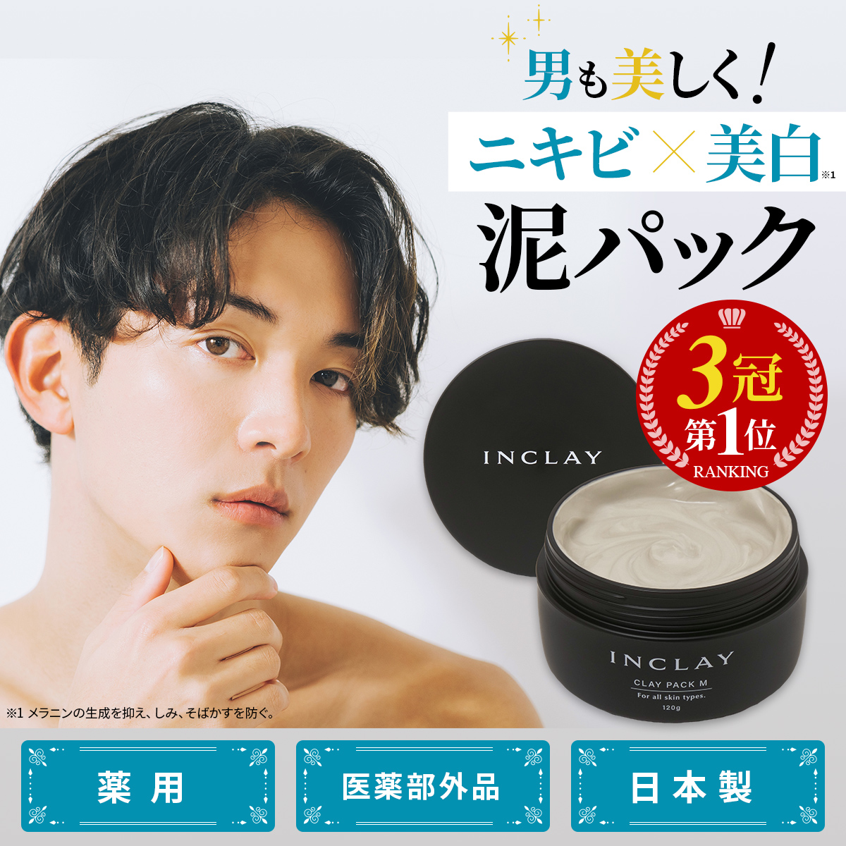 薬用 泥パック ニキビ対策 美白 ケア パック 男性 美肌 効果 ニキビ スキンケア ニキビケア メンズ パック おすすめ ランキング 日本製 送料無料 (INCLAY)