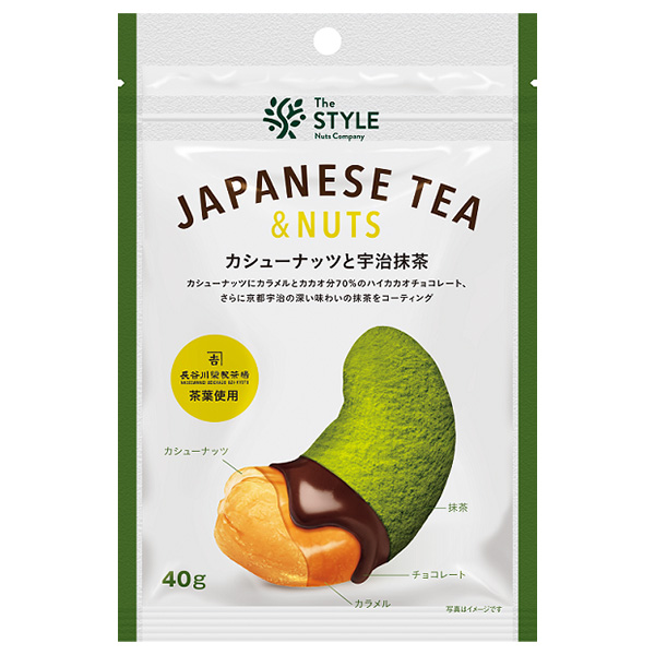 JAPANESE TEA & NUTS カシューナッツと宇治抹茶 40g / 便利なチャック付き袋 おやつ お菓子 カラメル チョコレート 京都宇治 抹茶 ハイカカオチョコレート