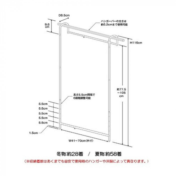 幅41〜70×奥行8.5×高さ116cm
