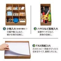 | 説明 | 木目調のデザインでお部屋に馴染みやすい、内側に強化段ボールを使用した、FAX台としても使える丈夫なマルチボックス。用途に合わせて収納できる大、中、小の3つの引き出しで整理整頓もラクラク、卓上スッキリ! 下段はFAX用紙収納にも使用可能です!オシャレな木目調でインテリアとしてもお部屋に合わせやすいデザインにしています。 |
