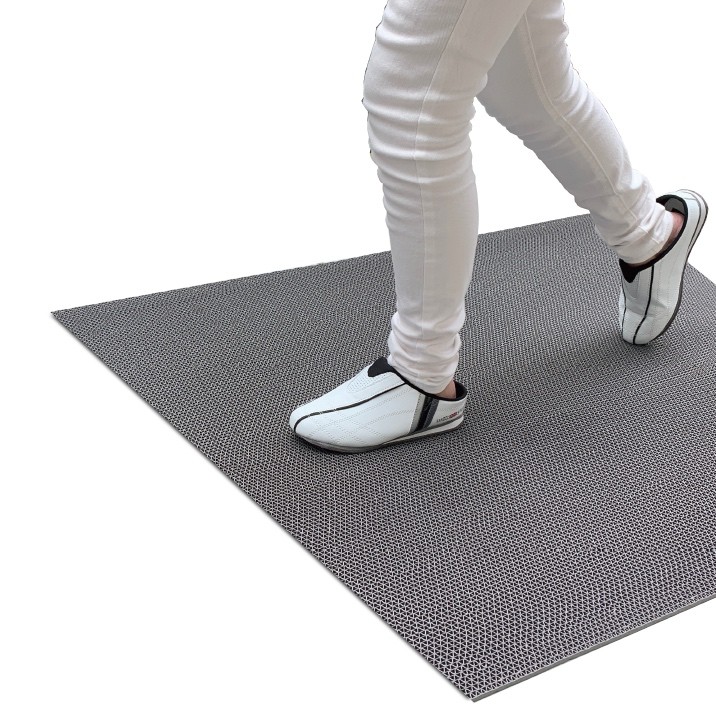 マット全体がメッシュ状で、足の下の水が抜け、滑りの原因を大きく低減します。