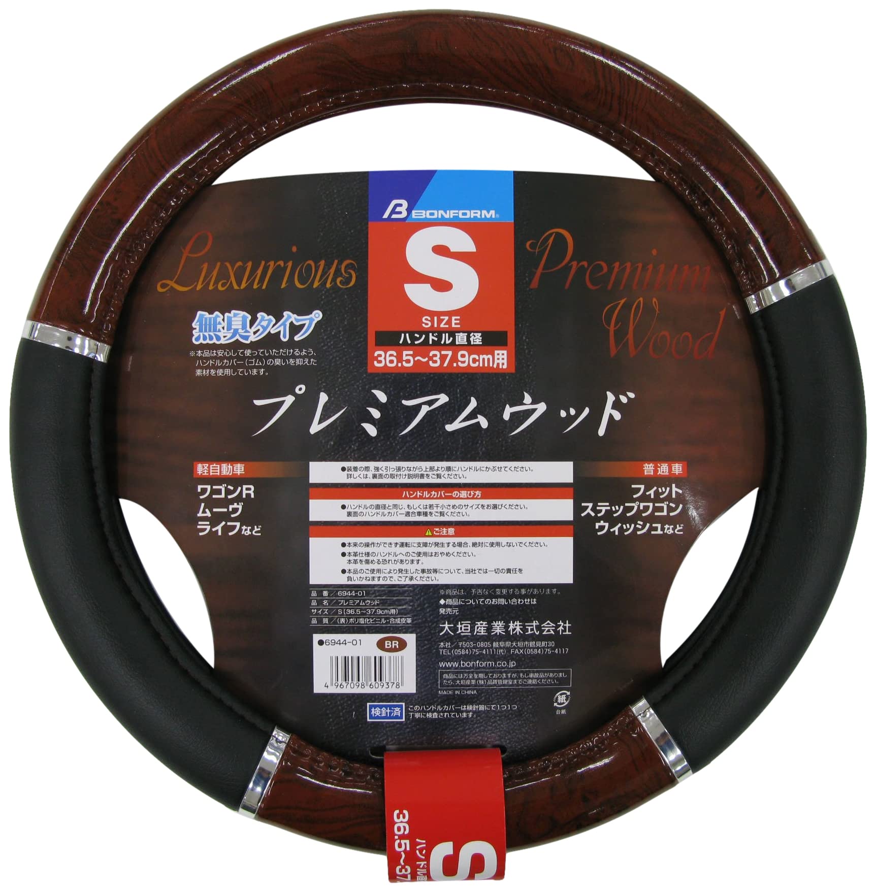 ボンフォーム(BONFORM) ハンドルカバー プレミアムウッド 軽/普通車 ステアリングカバー S:36.5~37.9cm ブラウン 6944-01