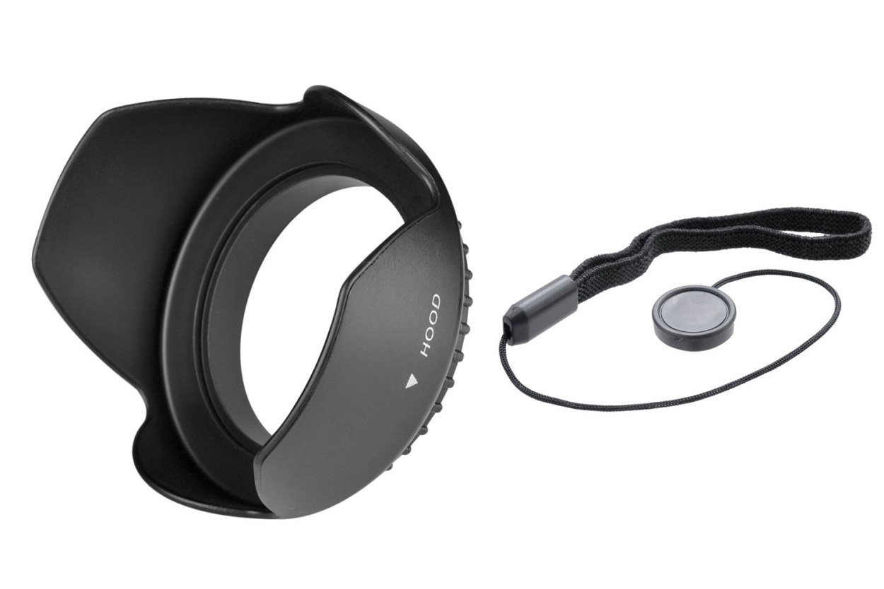 商品名:NinoLite 2点セット 花形 レンズ フード 58mm ねじ込み式 + レンズ キャップ 紛失防止 ストラップ