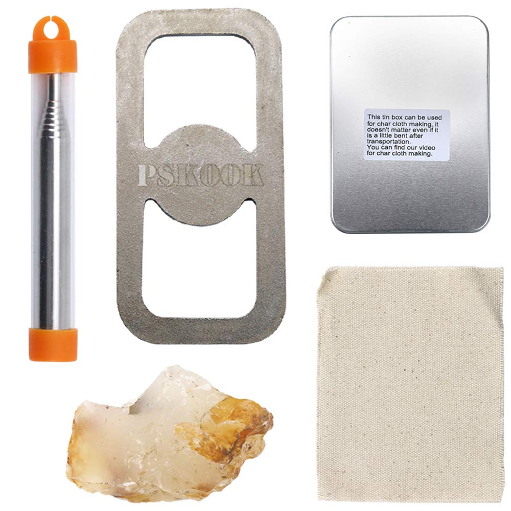 商品名:PSKOOK 火打鎌 (火打ち鎌) 火打金 (火打ち金) 火打石 (火打ち石) 火起こし ファイヤースターターキット 火口 縁結び(火打鎌type1 set)