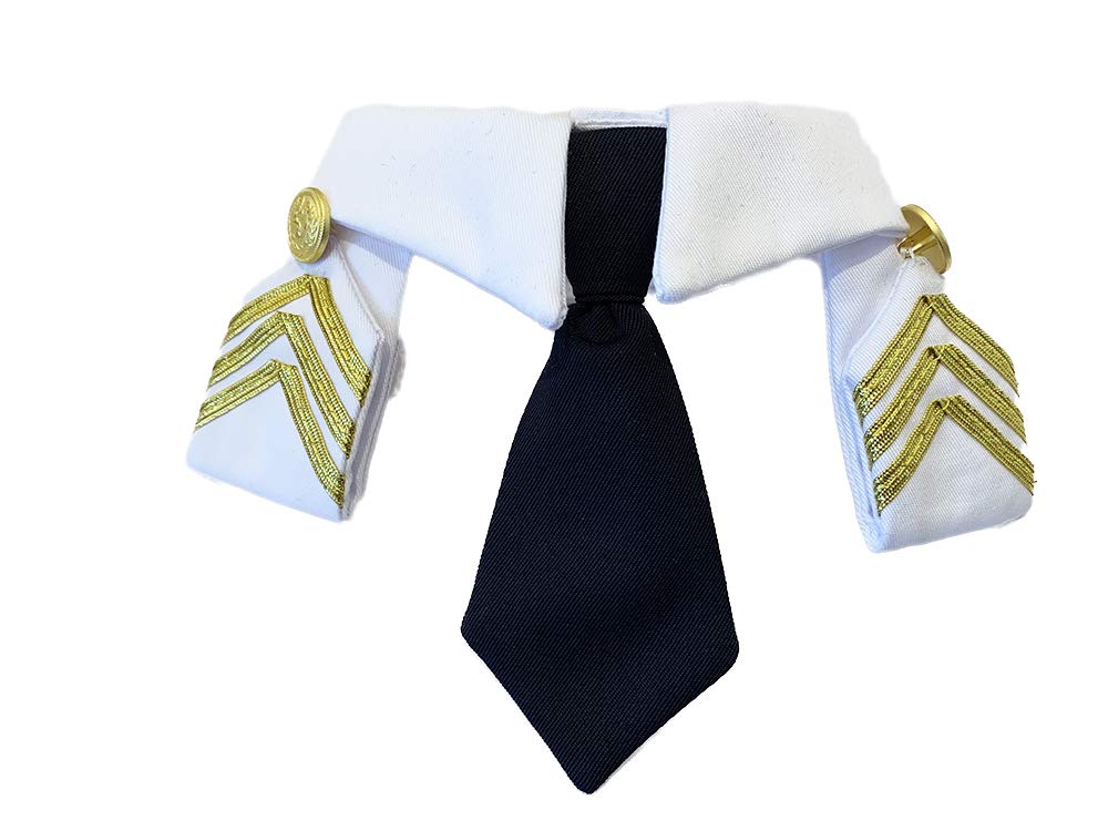 商品名:ネコのお洋服屋さん キャットプリン 猫服 キャットプリン 小型犬服 コスプレ ペット服 記念撮影 制服シリーズ 船長用シャツ 「船長さんの襟章ネクタイシャツ」 ホワイト М