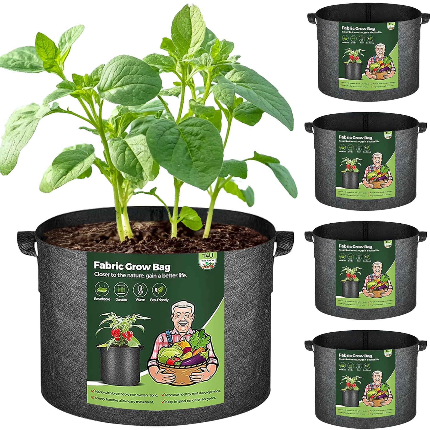 T4U 不織布プランター 布鉢 持ち手付き 10ガロン (37L) 40cm x 29cm 5個セット 不織布ポット フェルト 栽培袋 厚手 植え袋