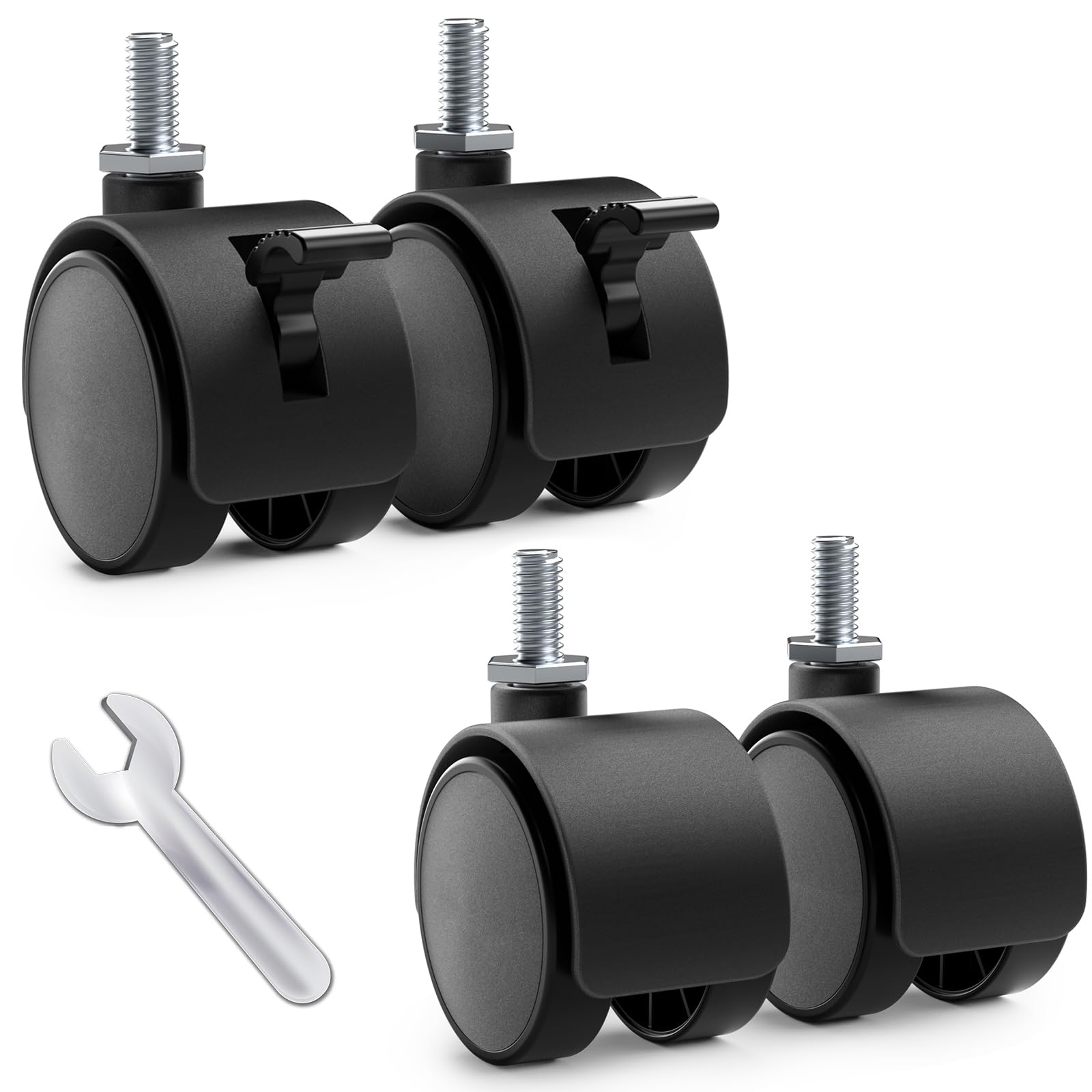 商品名:キャスター ネジ式キャスター m8 ストッパー付き 50径 360度回転 静音 取替えキャスター ネジ込み式 4個 セット (ストッパーなし2個+ストッパー付2個)