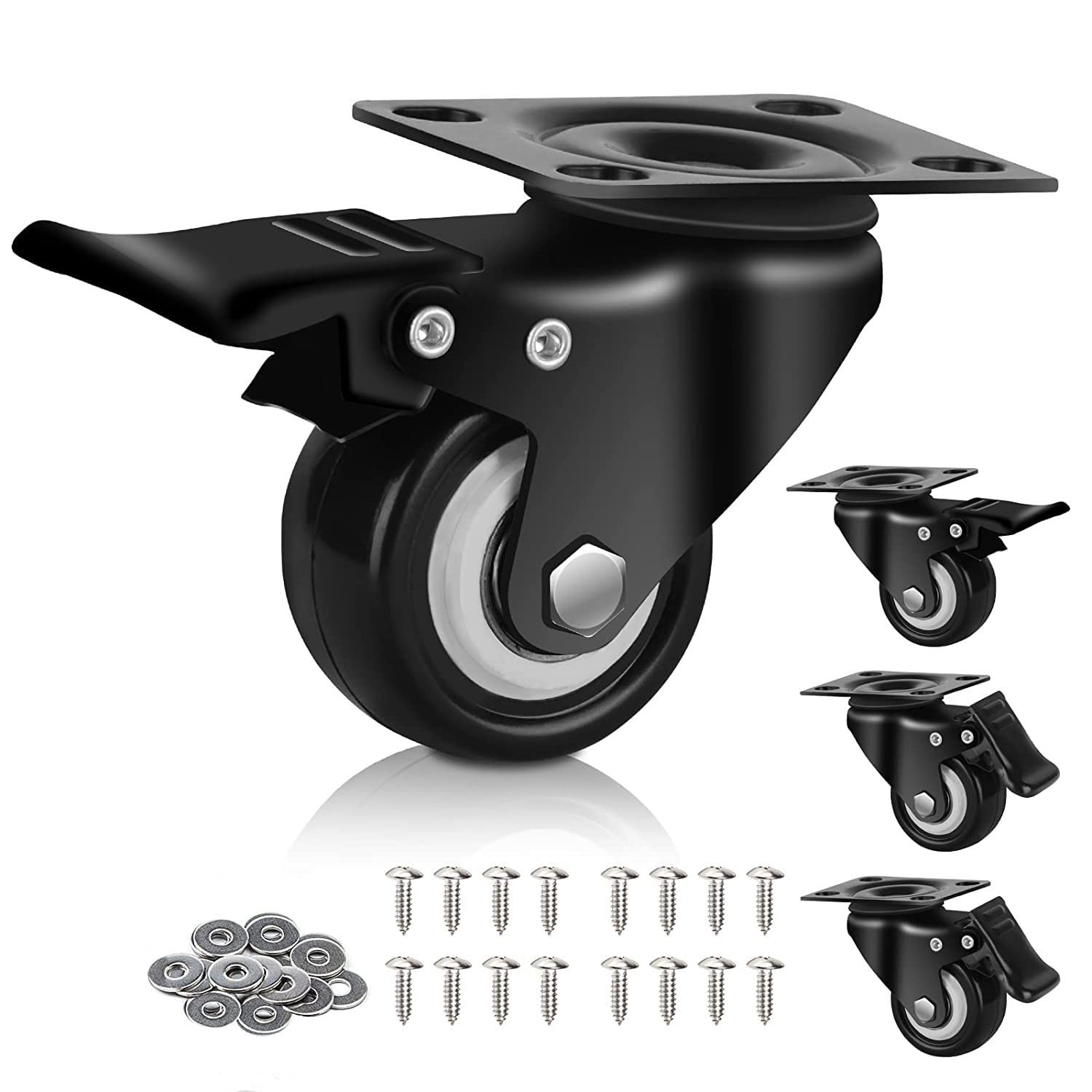 商品名:Zalslei プレート式 キャスター 車輪 ブレーキ付き 1.5インチ 4個耐荷重200kg 360度回転 高耐久性 ストッパー付き 自在キャスター ネジ付き 取替えDIY用 交換用 便利グッズ 4個セット ホイール径38mm
