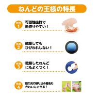 乾燥してもひび割れしない! 一般的なねんどは乾燥時に収縮・変形しますが、ねんどの王様は変形しにくく、時間がたってもひび割れしないので、作った形を維持でき、制作した作品をいつまでも美しく保存できます。燥した粘土にもよくつく!ねんどどうしが吸い付くようによくつくので、作品づくりが楽々!細かな表現も手間取らない!乾燥した粘土にもよくなじみます。