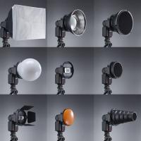 クリップオンストロボに各アクセサリーを装着するためのアダプターです。 ストロボサイズに合わせてクランプ式で固定できます。 高さ32〜58mm、幅85mmまで装着可能な汎用タイプです。 アクセサリ―はバヨネット式でワンタッチで装着可能です。