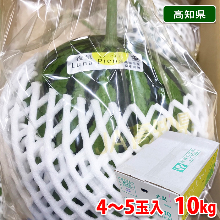 高知県産 夜須 ルナ・ピエナ(Luna Piena ) ルナピエナスイカ すいか 秀品 4〜5玉入 10kg (箱) 国産 フルーツ 空中立体栽培