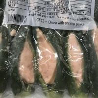 オクラの中に海老のすり身を入れた惣菜食品で、オクラの緑と海老ミンチのピンクの色合いが良い商品です。
