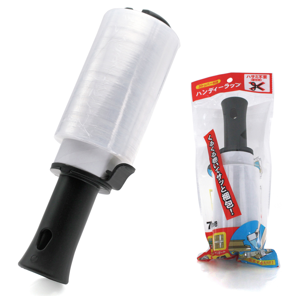 ハンディーラップは、持ち手付きで片手で簡単に巻き付けられる小型ストレッチフィルムです。