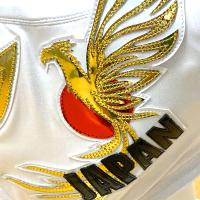顔の左右にはゴールドの「鳳凰」、赤い日の丸、黒の「JAPAN」の文字が配置、