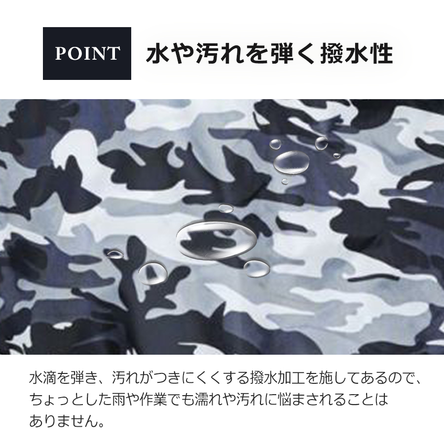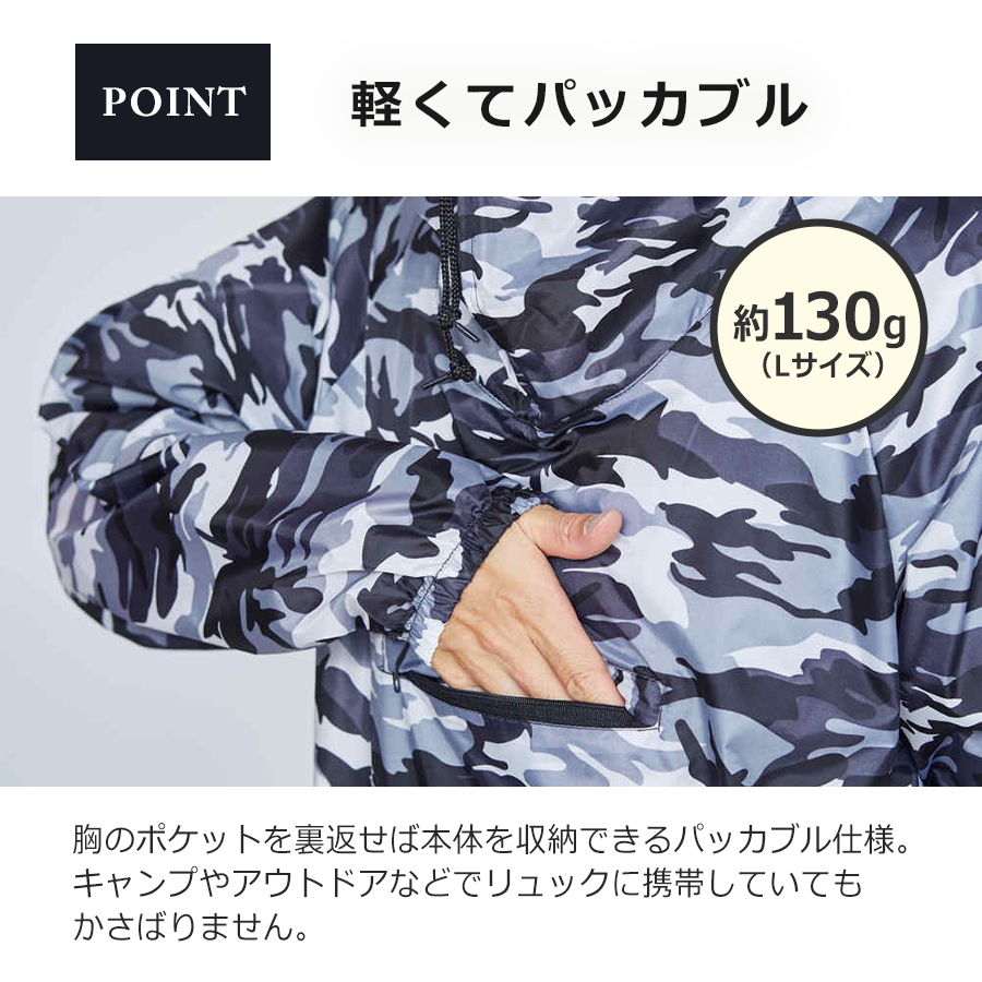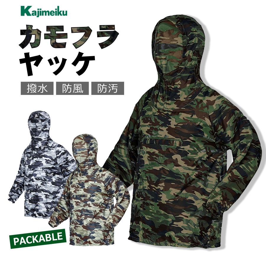 | カジメイク Kajimeiku No.2217 迷彩ヤッケ 撥水 ナイロンヤッケ サバゲ― 塗装 作業 現場 ハイキング アウトドア ガーデニング ◆商品紹介◆ 素材は汚れが付きにくいナイロン100%にはっ水加工を施し、風よけ汚れよけに最適! アウトドアやサバゲーでウインドブレーカーとして、現場仕事の方や農作業にいつもよりカジュアルなカモフラ柄はいかがですか? 胸部分には小物の収納に便利なポケット付きで、ひっくり返すと本体を収納できる優れもの。 ポケット収納は汚れた面を内側にしまえる仕様になっているので、使った後の持ち運びも便利で、かさばりません。 セットで着られる別売りパンツもあり。 |
