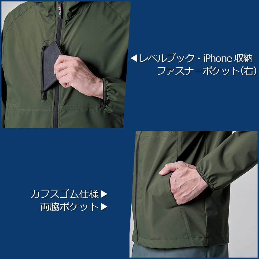 | バートル BURTLE ウインドブレーカー 長袖 防風 撥水 ストレッチ ポケット スポーティ ワークウェア 普段着 作業着 アウター ウィンドブレーカー ◆商品紹介◆ 大人気ワークブランド「バートル」の撥水防風性能を備えたウインドブレーカーです! ストレッチ、撥水性、防風性を併せ持つ軽量で心地よい肌触りのマットシェル素材を使用し幅広いアクティビティーに対応する万能なウインドブレーカージャケット。 軽さと心地よさを追求したマットシェル素材で、撥水性・防風性・ストレッチ性を備えた頼れるウインドブレーカージャケット。 さまざまなアクティビティで快適さをサポートします。 耐水圧5,000mmで、急な小雨にも対応し、水が染み込みにくく快適な着心地をサポートします。 (※防水ではございません。長時間濡れると浸水の可能性がございますのでご注意ください。) 通勤・通学やハイキングなどの軽いアウトドア、天候が変わりやすい旅行先でも重宝する、頼りになる一着です。 ラミネートコーティングが施された素材が防風性能を発揮し、冷たい風や雨の侵入を軽減します。 さらに、フードが顔まわりや耳元をカバーし、体温低下を抑えて快適さをサポートするため、風の強い日や寒冷地での使用にも適しています。 伸長率15%のストレッチ生地が、動きに合わせてしなやかにフィット。 アクティブシーンはもちろん、通勤・通学、軽作業など、日常の様々な場面で動きやすさをサポートします。 ※実店舗ではお取り扱いが無い場合がございます。 店舗での取り扱いの有無に関しては直接店舗へお問い合わせをお願いいたします。 |