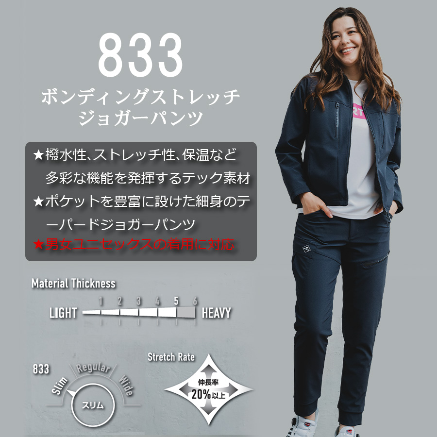 バートル ボンディングストレッチジョガーパンツ 833 メンズ レディース ワークパンツ 作業服 作業着 作業ズボン BURTLE