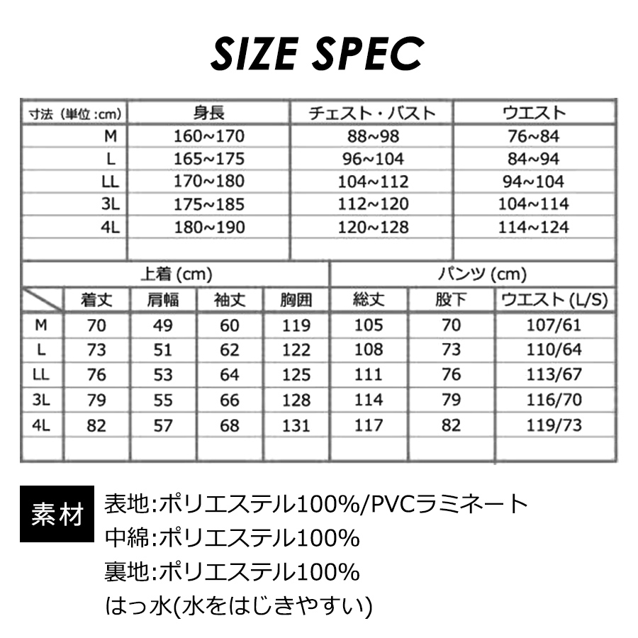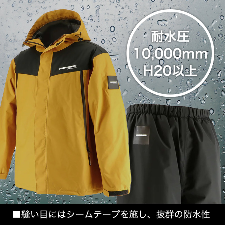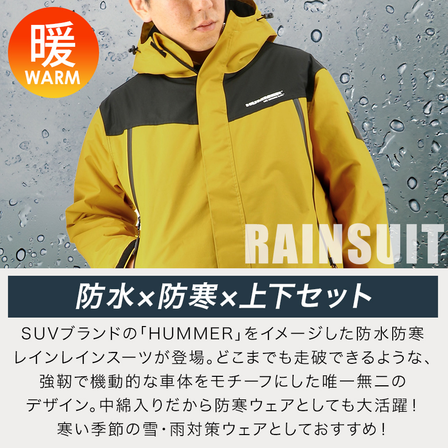 | 男性 メンズ レインウェア カッパ レインジャケット レインパンツ レインスーツ 防水 はっ水 防水 防寒 中綿 M L LL 3L 4L 5L 軽量 仕事 作業着 バイク 作業 雨具 雨合羽 アウター上下セット 20代 30代 40代 50代 60代 秋冬 雨 雪 除雪 除雪作業 大雨 アウトドア 屋外作業 キャンプ バイクハマー HUMMER ◆商品紹介◆ SUVブランドの「HUMMER」をイメージした防水防寒レインレインスーツが新登場。 どこまでも走破できるような、強靭で機動的な車体をモチーフにした唯一無二のデザインになります。 中綿入りで防寒性も完備しているので、寒い季節の雨や雪対策におすすめです。 ファスナーポケット、フラップテープ、ドローコードなどの多機能なギミックも搭載しております。 耐水圧:10,000mm/H2O以上 縫い目には止水テープ加工を採用し、大雨にも対応できるレベルの高い防水性を発揮します。 上下セットで雨の日の作業・通勤・バイク乗車にも安心して使えます。 しっかりした生地で防水、防寒までしっかりこなす多機能最強レインスーツは冬の雪や雨の中で頼れる強い味方です。 ※実店舗ではお取り扱いが無い場合がございます。 店舗での取り扱いの有無に関しては直接店舗へお問い合わせをお願いいたします。 |