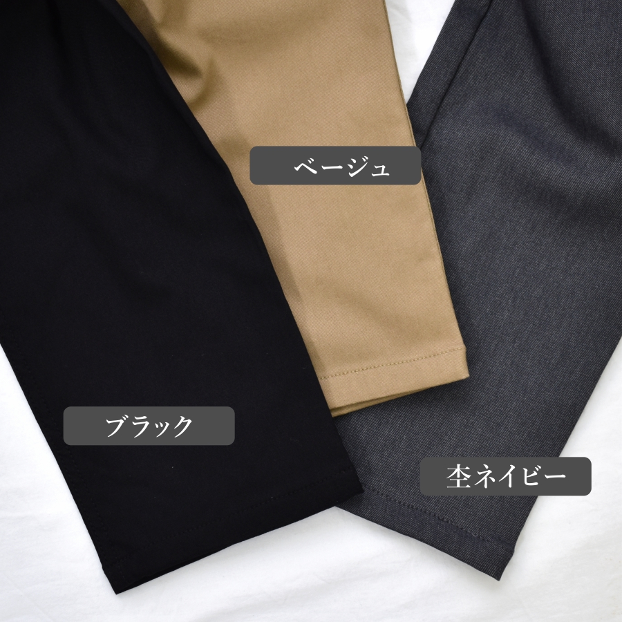 | ブラック・ベージュ: レーヨン76%、ナイロン20%、ポリウレタン4% 杢ネイビー: ポリエステル51%、レーヨン23%、ナイロン2%、ポリウレタン4%
