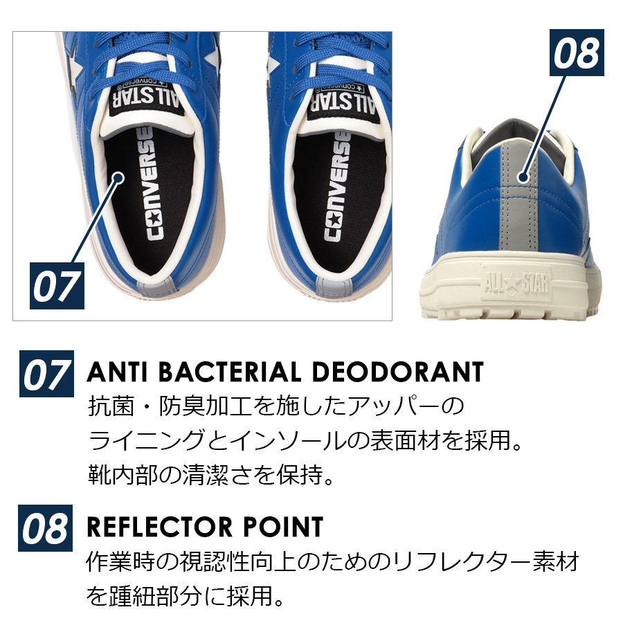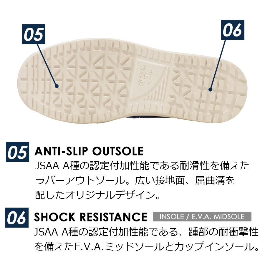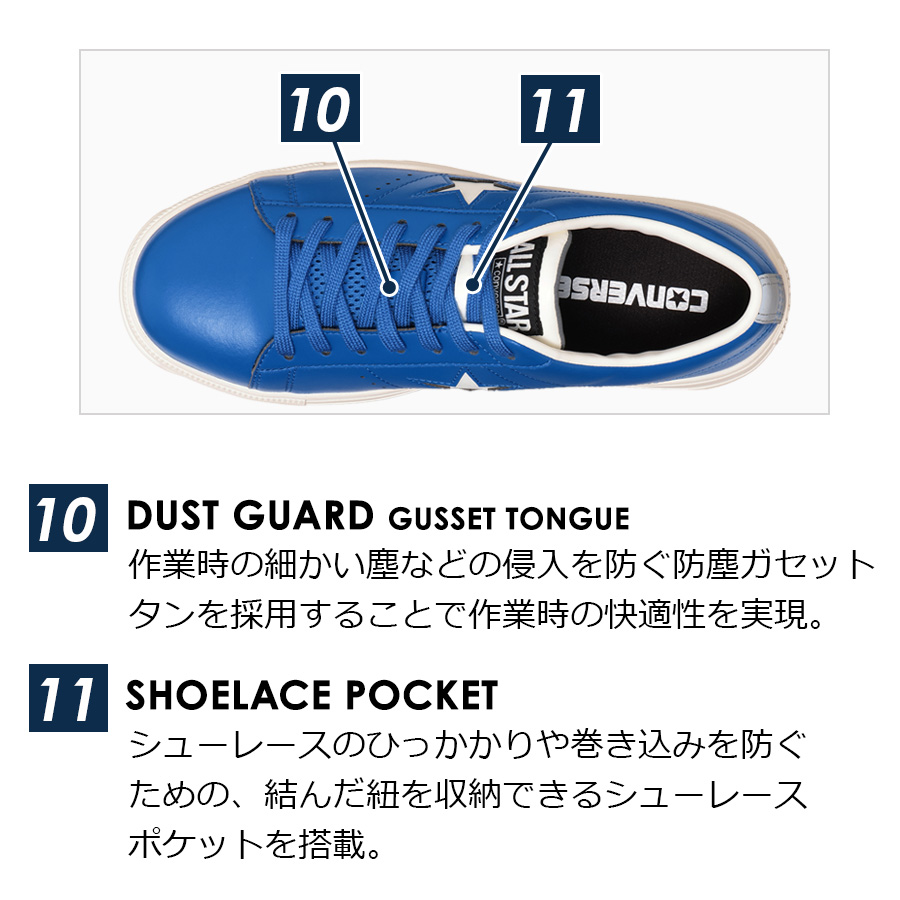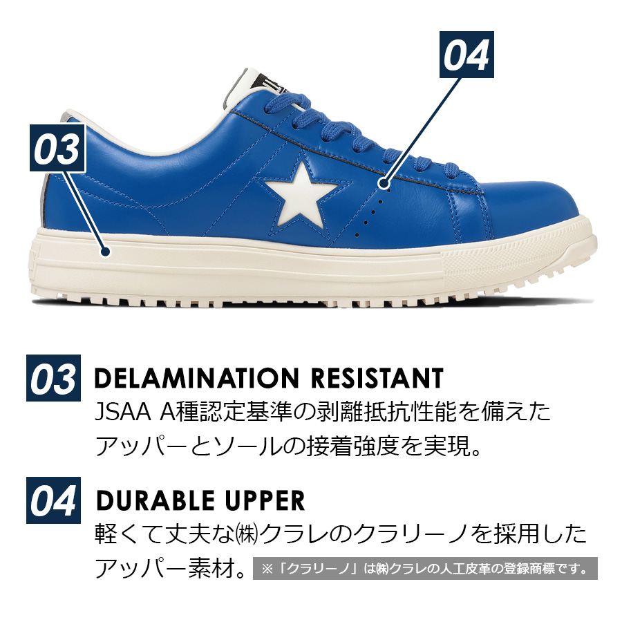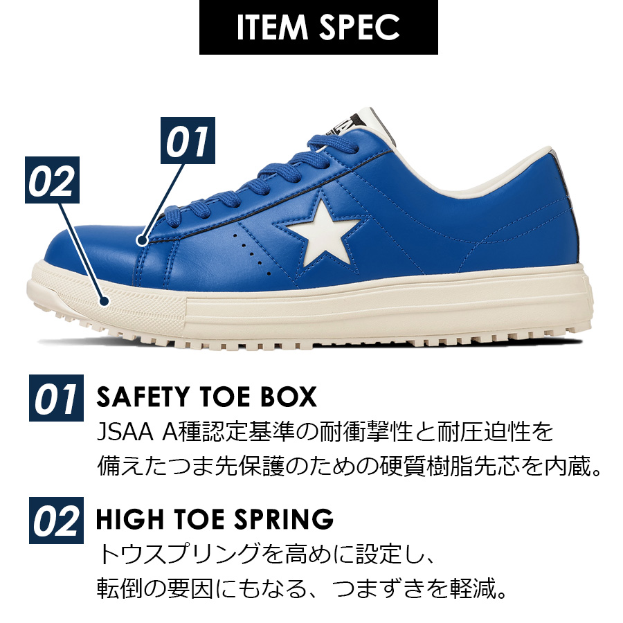 | CONVERSE コンバース 安全靴 作業靴 作業 ローカット ヒモ 紐 ONE STAR プロテクティブスニーカーライン JSAA規格 A種 人工皮革製 プロスニーカー セーフティーシューズ 靴 シューズ 安全靴 先芯入り 先芯 リフレクターCONVERSE WORKING コンバース ワーキング ◆商品紹介◆ 1974年に誕生したコンバースを代表するアイコンであるワンスターのデザインを踏襲した新モデル。 アッパーには、軽量でありながら耐久性に優れたクラレ社製の「クラリーノ(R)」素材を採用。 JSAA規格が定める、つま先部の耐衝撃性や耐圧迫性、表底の剥離抵抗、耐滑性、踵部の衝撃吸収性などの性能に加え、E.V.A.パーツを踵部裏面に搭載したインソールを採用しクッション性を向上。 リフレクター織込のスペアシューレースが付属。 ※「クラリーノ(R)」は(株)クラレの人工皮革の登録商標です。 プロテクティブスニーカーは疲れにくく、つま先を保護する先芯デザインが嬉しい作業用スニーカーです。建築作業・DIY・バイク・自動車整備などの作業用スニーカーとして大活躍してくれます。 ※実店舗ではお取り扱いが無い場合がございます。 店舗での取り扱いの有無に関しては直接店舗へお問い合わせをお願いいたします。 |