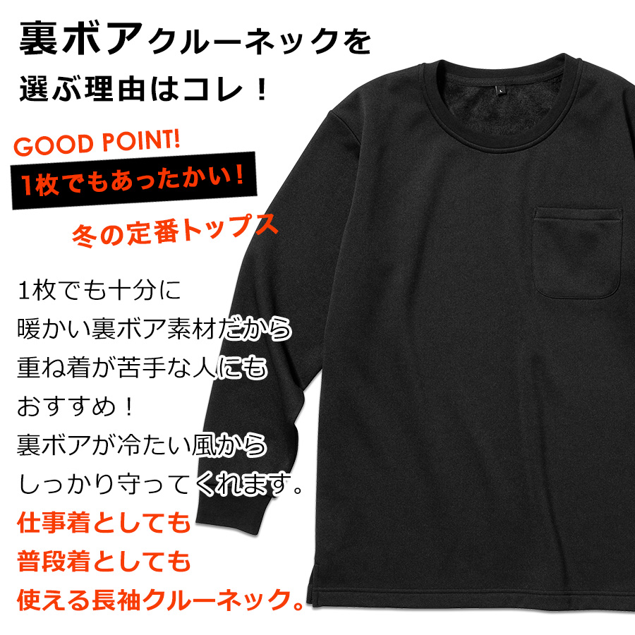 | メンズ 男性 男 裏ボア ボア 毛布みたい 1枚で暖かい クルーネック クルー ラウンドネック 丸襟 長袖 長そで ながそで 胸ポケット ブラック ネイビー 黒 紺 伸縮性 伸縮 伸びる ストレッチ 動きやすい 無地 防寒 防寒着 防寒対策 寒さ対策 あったか あったかい あたたかい 暖かい寒い さむい シンプル ベーシック 通勤 通学 雪の日 雪 真冬 毛布 暖房 エコ 送り迎え 送迎 仕事 現場仕事 幼稚園 ゴルフ 普段着 ワンマイル ワードローブ デイリー 定番 30代 40代 50代 60代 2024AW 秋冬 冬 プロノ Prono ◆商品紹介◆ 大人気の裏ボアシリーズの長袖クルーネックシャツ。 まるで毛布に包まれているような暖かな裏ボア素材が冬に嬉しい1枚です。 薄手のスウェットぐらいの厚みなのに、ぽかぽか暖かいトップス。 1枚で暖かい裏ボア長袖クルーネックは冬の重ね着が苦手な方にも安心です。 伸縮性が良いストレッチ素材を使用しているので、動きを妨げず、防寒アイテムにありがちなごわつき感を軽減します。 動きやすい生地なので、仕事の作業着にもおすすめです。 1枚で使いやすい定番クルーネックは流行関係なく使えるのが◎ 通勤や買い物、現場作業など日常的に動き回る事が多い方にもおすすめの1枚になります。 保温性も高い裏ボア素材だから寒い時期のメイントップスとして大活躍間違いなしです。 |