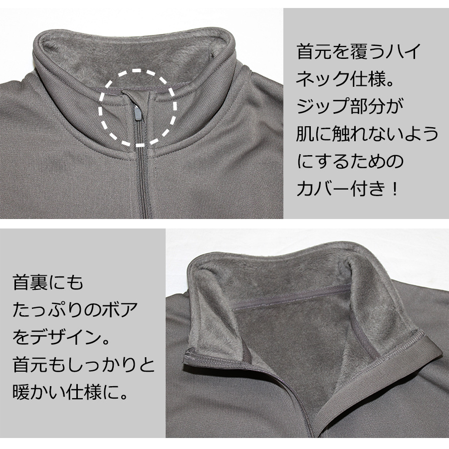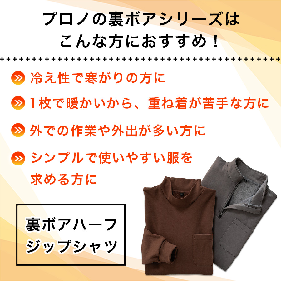 | メンズ 男性 男 裏ボア ボア 毛布みたい 1枚で暖かい ハーフジップ ZIP ジップ ファスナー ハイネック タートルネック モックネック 長袖 長そで ながそで 胸ポケット ブラック ネイビー ダークチャコール グレー 黒 紺 灰 伸縮性 伸縮 伸びる ストレッチ 動きやすい 無地 防寒 防寒着防寒対策 寒さ対策 あったか あったかい あたたかい 暖かい 暖パンツ 寒い さむい シンプル ベーシック 通勤 通学 雪の日 雪 真冬 毛布 暖房 エコ 送り迎え 送迎 仕事 現場仕事 幼稚園 ゴルフ 普段着 ワンマイル ワードローブ デイリー 定番 30代 40代 50代 60代 秋冬 冬 プロノ Prono ◆商品紹介◆ まるで毛布に包まれているような暖かな裏ボア素材が冬に嬉しい1枚。 薄手のスウェットぐらいの厚みなのに、ぽかぽか暖かいトップスです。 1枚で暖かい裏ボアハーフジップシャツは冬の重ね着が苦手な方にも安心です。 ジップを閉じた時に、首や顎などにジップが触れてひんやりしないようにカバーが付いています。 ハーフジップ仕様なので、暑い時はジップ部分を開けて熱を逃がす事もできます。 伸縮性が良いストレッチ素材を使用しているので、動きを妨げず、防寒アイテムにありがちなごわつき感を軽減します。 動きやすい生地なので、仕事の作業着にもおすすめです。 1枚で使いやすい主役級のハイネックシャツは流行関係なく使えるのが◎ 通勤や買い物、現場作業など日常的に動き回る事が多い方にもおすすめの1枚になります。 保温性も高い裏ボア素材だから寒い時期のメイントップスとして大活躍間違いなしです。 |