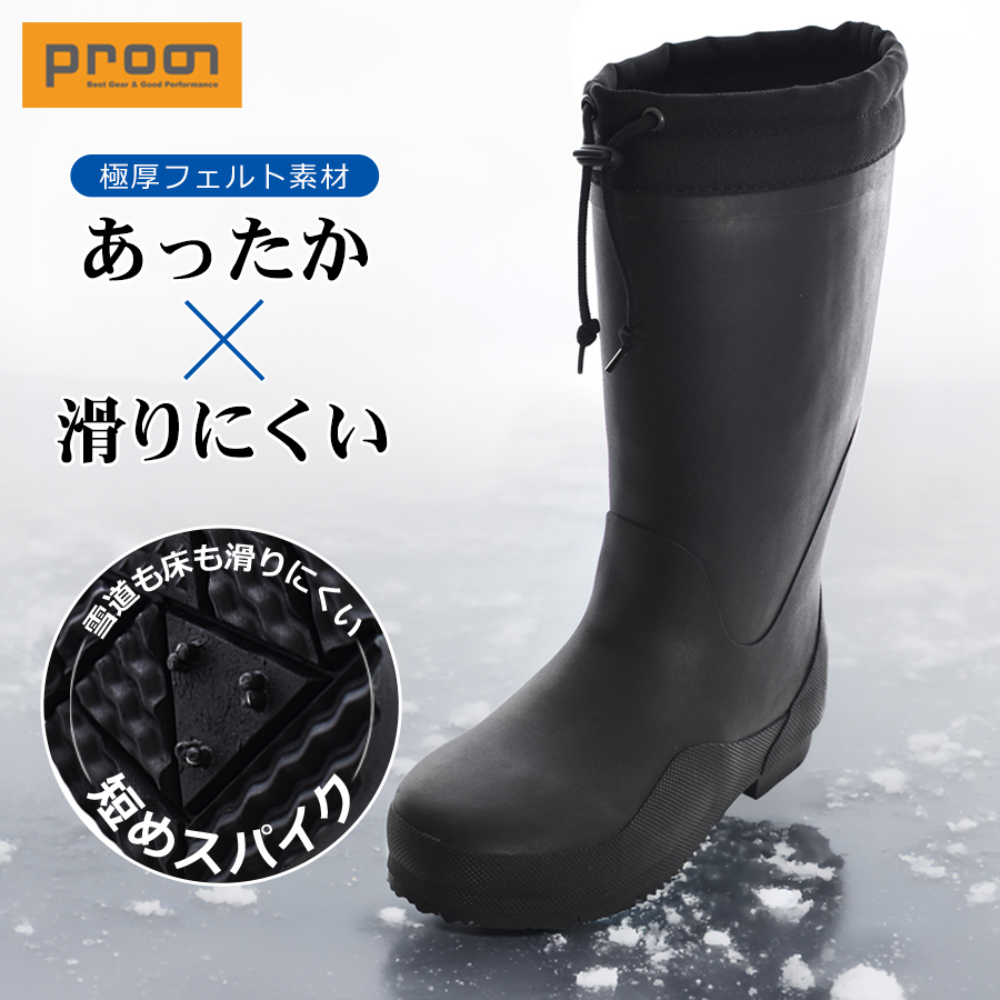 | フェルト ウェットスーツ 防寒 長靴 ピンスパイク 耐滑 軽量 ◆商品紹介◆ こちらの商品は「わけあり」商品です。 「わけあり」とは、本体ゴムに傷、しわ、気泡等があるもの、底ピンの出方が基準以下の状態であるものを指しております。 使用上の問題はございません。 ※商品の状態は個体差がございます。ご了承の上ご注文くださいますようお願い申し上げます。 内側にフェルトを使った暖かい防寒長靴で、24本のステンレス製ピンで滑りにくい仕様です。 ・暖かい秘密は、6ミリ厚のフェルト 一般的な防寒長靴はウレタンを使うのに対し、本商品のライニング(靴の内側)には、6ミリ厚のフェルト素材を採用しました。 ウレタンよりも重量がありますが、その分丈夫で優れた保温性と吸湿性を発揮し、ウレタンを大きく上回る暖かさを提供します。 ・ピン短めで屋内でも滑りくにい!! 長いピンスパイクは雪道では滑りにくいものの、屋内の床では逆に不安定で滑りやすく危険です。 24本のステンレス製ピンスパイクは、あえて短くすることで、氷上や雪道だけでなく、屋内の床でも滑りにくくしました。 ・ピンとソールでしっかりグリップ 高い滑り止め性能を発揮するソールは、凍結した路面でも安定のグリップ力を発揮します。ステンレス製のピンは氷上でも足元をしっかりとホールドし、転倒のリスクを低減します。 ・雪や汚れ、冷気が入りにくい 履き口には、フードとスピンドルが付いています。フードは雪等の侵入を防ぐとともに、靴内部の温かい空気の逸出を抑えます。 また、スピンドルは、ズボンとの隙間から入り込む冷気や雪を効果的に防ぐ役割を果たします。 ・優れたフィット感のラスト(足型) 靴の内部の形状を決めるラスト(足型)は、長時間の作業でも疲れにくい、優れたフィット感を実現するラストを採用しています。快適な着用感が得られるよう設計されているのが特徴です。 ・キッカーで脱ぎ履きが楽々 かかとの内側部分にキッカー(引っかけ部)を装備しています。特に頻繁に長靴の着脱が必要な場面で威力を発揮します。 このキッカーがあると、両手が塞がっている状況でも、もう一方の足で引っかけるだけで簡単にスムーズに脱ぎ履きできるので、作業効率の向上が望めます。 ・ムレ感軽減!!「ディンプル中敷き」 中敷きにポコポコとした凹凸が特徴の「ディンプル中敷き」を採用しました。凹凸があることで足裏との接地面積が小さく、通気性が向上し、蒸れにくい環境を提供。あなたのアクティブな活動をサポートします。 |