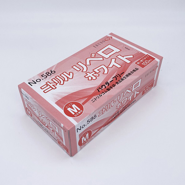 エブノ 使い捨て グローブ 100枚 586 ニトリル リベロ ホワイト PF M パウダーフリー ニトリルゴム手袋